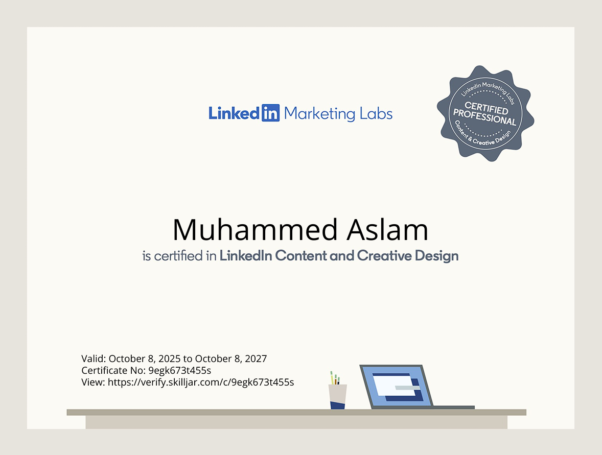 “Aslam has a great sense of creativity when it comes to graphic design. He pays attention to every small detail and makes sure his designs look clean and balanced. His ideas are always fresh, and he brings a unique touch to every project he works on.”